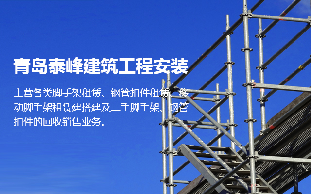 青島泰峰建筑工程安裝有限公司主營各類腳手架租賃、鋼管扣件租賃、移動腳手架租賃建搭建及二手腳手架、鋼管扣件的回收銷售業(yè)務(wù)。公司實力雄厚,擁有鋼管約3000噸、扣件70萬只、鋼笆7萬多片塔吊、人貨電梯多臺;總資產(chǎn)達(dá)到1000多萬元。是一家具有腳手架搭建、水電安裝專業(yè)承包施工資質(zhì)的企業(yè),并成為青島市五金協(xié)會的會員單位。且多次參與高層建筑、建筑裝修、玻璃幕墻、橋梁、隧道、地鐵、電廠維修施工、造船等行業(yè)的施工,并獲得施工單位的一致好評。 人無信不立,有信則強(qiáng)公司以“薄利多銷、服務(wù)取勝”為經(jīng)營宗旨...